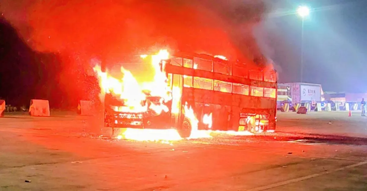 ଡବଲ୍-ଡେକର ବସରେ ଲାଗିଲା ନିଆଁ