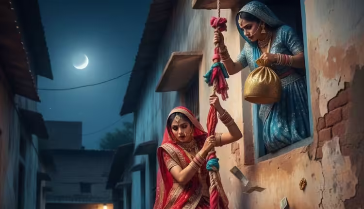 ବିବାହ ରୀତିନୀତି ସମାପ୍ତ ହେବା ପରେ, ଡକାୟତ ବଧୂମାନେ ରାତିର ଅନ୍ଧାରର ସୁଯୋଗ ନେଇଥିଲେ। ଖସିଯିବା ପାଇଁ, ସେମାନେ ଦ୍ୱିତୀୟ ମହଲାରୁ ତଳକୁ ଚଢ଼ି ଏକ ଆଶ୍ଚର୍ଯ୍ୟଜନକ ଉପାୟ ଅବଲମ୍ବନ କଲେ। ଦୁଇଜଣ ଶାଢ଼ିରୁ ଏକ ରଶି ତିଆରି କଲେ ଏବଂ ତାହା ବ୍ୟବହାର କରି ତଳକୁ ଚଢ଼ିଗଲେ। ପଳାଇବା ପୂର୍ବରୁ, ସେମାନେ ଦୁଇଟି ପରିବାରକୁ ଆଶ୍ଚର୍ଯ୍ୟ କରିଦେଲେ। ଦୁଇଜଣ ଚାରୋଟି ସୁନା କଙ୍କଣ, ଗୋଟିଏ ମୁଦି, ଗୋଟିଏ ମଙ୍ଗଳସୂତ୍ର ଏବଂ ପ୍ରାୟ ୧,୨୦,୦୦୦ ଟଙ୍କା ନଗଦ ଲୁଟି ନେଇ ପଳାଇଗଲେ। ସକାଳ ହେବା ମାତ୍ରେ ପରିବାରଗୁଡ଼ିକ ଉପରେ ଶୋକ ଏବଂ ଅବିଶ୍ୱାସର ନୀରବତା ଜାତ ହେଲା।