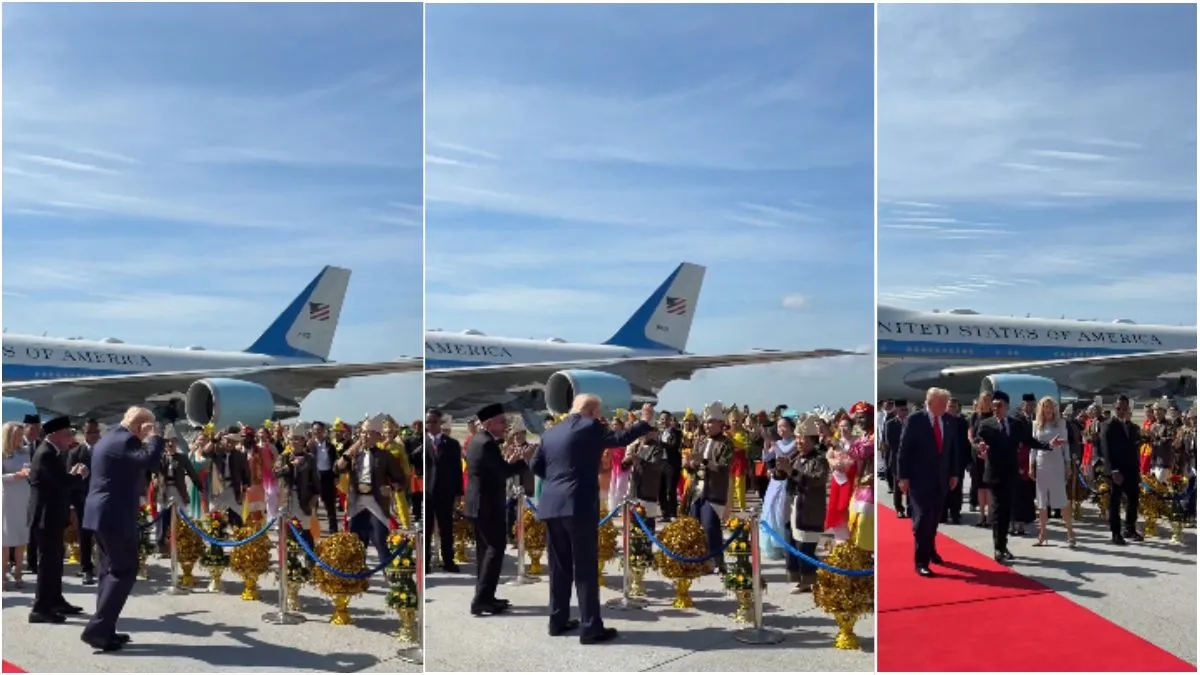 ଟ୍ରମ୍ପଙ୍କ ମାଲେସିଆ ଯାତ୍ରାର ଏହି ଭିଡିଓ ସୋସିଆଲ ମିଡିଆରେ ଦ୍ରୁତ ଗତିରେ ଭାଇରାଲ ହେଉଛି, ଯେଉଁଥିରେ ୟୁଜର୍ସ ବିଭିନ୍ନ ପ୍ରକାରର ପ୍ରତିକ୍ରିୟା ଦେଉଛନ୍ତି।ଭାଇରାଲ୍ ଭିଡିଓରେ, ଆମେରିକା ରାଷ୍ଟ୍ରପତି ଟ୍ରମ୍ପ ଏୟାର ଫୋର୍ସ ୱାନ ନିକଟସ୍ଥ ବିମାନବନ୍ଦର ଟାରମ୍ୟାକରେ ଡ୍ରମର ତାଳେ ନାଚୁଥିବାର ଦେଖାଯାଉଛି ଏବଂ ତାଙ୍କର ଉତ୍ସାହୀ ପଦକ୍ଷେପ ସେଠାରେ ଉପସ୍ଥିତ ଲୋକଙ୍କ ମୁହଁରେ ହସ ଫୁଟାଇ ଦେଉଛି।