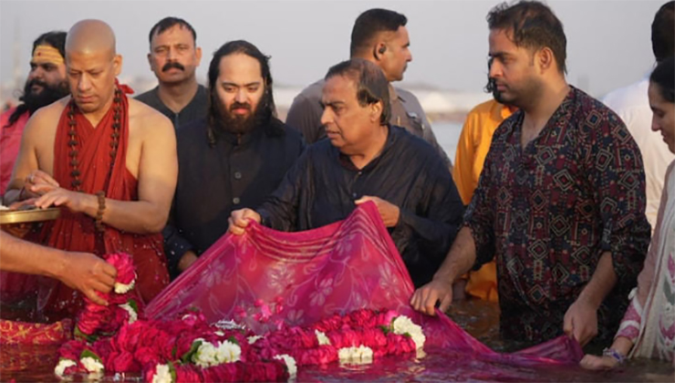 ପୁଅବୋହୁଙ୍କୁ ସାଙ୍ଗରେ ଧରି ଧାଇଁଆସିଲେ ପ୍ରୟାଗରାଜ । ଗାଧୁଆ ପାଧୁଆ ସାରି ଆଧ୍ୟାତ୍ମିକ ପରିବେଶ ଭିତରେ କିଛି ସାଧୁସନ୍ଥଙ୍କ ଗହଣରେ କିଛି ସମୟ କଟାଇଥିଲେ ମୁକେଶ । ମା’ କୋକିଳାବେନ୍, ପୁଅ ଆକାଶ ଓ ଅନନ୍ତ, ବୋହୁ ଶ୍ଲୋକ ଓ ରାଧିକା, ଅଣନାତି ପୃଥ୍ୱୀ ଓ ବେଦ, ଭଉଣୀ ସାଲଗାଓକାର ଓ ନିନା କୋଠାରୀ, ଶାଶୁ ପୁନମବେନ୍ ଦଲାଲ ଓ ତାଙ୍କ ସଂପର୍କୀୟ ମମତାବେନ୍ ଦଲାଲଙ୍କୁ ଧରି ମୁକେଶ ତ୍ରିବେଶୀ ସଙ୍ଗମରେ ବୁଡ଼ ପକାଇ ମହାପୂଣ୍ୟ ଅର୍ଜନ କରିଥିଲେ ।