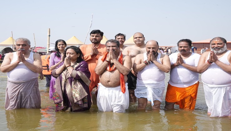 ତ୍ରିବେଣି ସଙ୍ଗମରେ କେନ୍ଦ୍ରମନ୍ତ୍ରୀଙ୍କ ସହ ଉତ୍ତର ପ୍ରଦେଶର ଉଚ୍ଚ ଶିକ୍ଷା ମନ୍ତ୍ରୀ ଯୋଗେନ୍ଦର ଉପାଧ୍ୟାୟ, ପରିବହନ ମନ୍ତ୍ରୀ ଦୟାଶଙ୍କର ସିଂହ ଓ ଏମଏସଏମଇ ମନ୍ତ୍ରୀ ରାକେଶ ସଚନ ପ୍ରମୁଖ ମଧ୍ୟ ବୁଡ ପକାଇଥିଲେ ।