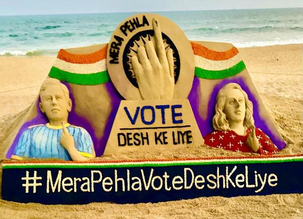 ଏହି କ୍ରମରେ ବିଶିଷ୍ଟ ବାଲୁକା ଶିଳ୍ପୀ ପଦ୍ମଶ୍ରୀ ସୁଦର୍ଶନ ପଟ୍ଟନାୟକ ପୁରୀ ବେଳାଭୂମିରେ ଏକ ବାଲୁକା କଳାକୃତି ଗଢ଼ିଛନ୍ତି। ନିଜର କଳାକୃତି ମାଧ୍ୟମରେ ସେ ଯୁବ ତଥା ପ୍ରଥମ ଥର ପାଇଁ ମତଦାତା ହୋଇଥିବା ନାଗରିକମାନଙ୍କୁ ବହୁସଂଖ୍ୟାରେ ମତଦାନ କରିବା ପାଇଁ ବାର୍ତ୍ତା ଦେଇଛନ୍ତି। ସୂଚନାଯୋଗ୍ୟ ଦେଶର ବିଭିନ୍ନ ଉଚ୍ଚ ଶିକ୍ଷାନୁଷ୍ଠାନରେ ମଧ୍ୟ “ମେରା ପେହଲା ଭୋଟ୍ ଦେଶ କେ ଲିୟେ” ଅଭିଯାନ କାର୍ଯ୍ୟକାରୀ ହେଉଛି।