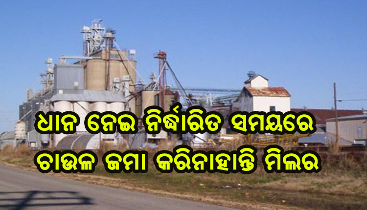ପଞ୍ଜୀକୃତ ମିଲରଙ୍କ ନିକଟକୁ ଧାନ ପଠାଇଥାଏ ରାଜ୍ୟ ଯୋଗାଣ ବିଭାଗ । ଧାନରୁ ଚାଉଳ ବାହାର କରି ଯୋଗାଣ ବିଭାଗ ଗୋଦାମ ଓ ଏଫସିଆଇ ଭଣ୍ଡାର ନିକଟରେ ଚାଉଳ ଜମା କରିବା ପାଇଁ ମିଲରଙ୍କୁ ତିନିମାସ ମହଲତ ଦିଆଯାଏ ।
