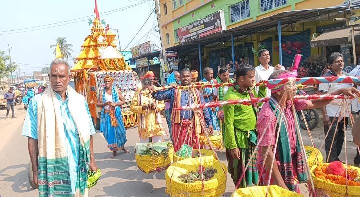 ପ୍ରାୟ ଦଶ ହଜାର ରୁ ଉର୍ଦ୍ଧ ଭକ୍ତ ଏଥିରେ ଯୋଗ ଦେଇଥିଲେ । ନିଆଳି ବିଧାୟକ ଛବି ମଲ୍ଲିକ ରାଜ୍ୟ ଉପମୁଖ୍ୟ ମନ୍ତ୍ରୀ ଙ୍କ ପ୍ରତିନିଧି ଶ୍ୟାମ ସୁନ୍ଦର ନାୟକ ଙ୍କ ସମେତ ୮ ଟି ପଂଚାୟତ ର ଲୋକ ପ୍ରତିନିଧି ଓ ଜନ ସାଧାରଣ ଯୋଗ ଦେଇଥିଲେ.ବଜାରରେ ଭକ୍ତ ସଂଖ୍ୟା କୁ ଆଖି ଆଗରେ ରଖି ଚାରିଛକ ଥାନା ଅଧିକାରୀ ମମତା ବିଶ୍ୱାଳ ନିମାପଡା ଏସ ଡି ପି ଓ ଜନାର୍ଦନ ପାଢ଼ୀ ସଦଳବଳେ ଘଟଣା ସ୍ଥଳରେ ଉପସ୍ଥିତ ରହି ଟ୍ରାଫିକ ନିୟନ୍ତ୍ରଣ କରିଥିଲେ…