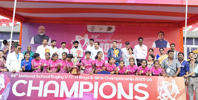 ଭୁବନେଶ୍ୱର: ୬୯ତମ ଜାତୀୟ ବିଦ୍ୟାଳୟ ସମୂହ ରଗବୀ ଚାମ୍ପିଅନସିପ୍ ୨୦୨୫-୨୬ ର ୧୭ ବର୍ଷରୁ କମ୍ ପ୍ରତିଯୋଗିତାରେ ବାଳିକା ବର୍ଗରେ ଓଡିଶା ଟିମ୍ ପ୍ରଥମ ସ୍ଥାନ ଅଧିକାର କରିଥିବା ବେଳେ ବାଳକ ବର୍ଗରେ ବିହାର ଟିମ୍ ଟାଇଟଲ୍ ହାସଲ କରିଛି। ୧୭ ବର୍ଷରୁ କମ୍ ବାଳିକା ବର୍ଗରେ ଓଡ଼ିଶା ପ୍ରଭାବଶାଳୀ ପ୍ରଦର୍ଶନ କରି ଟ୍ରଫି ଜିତିଛି।