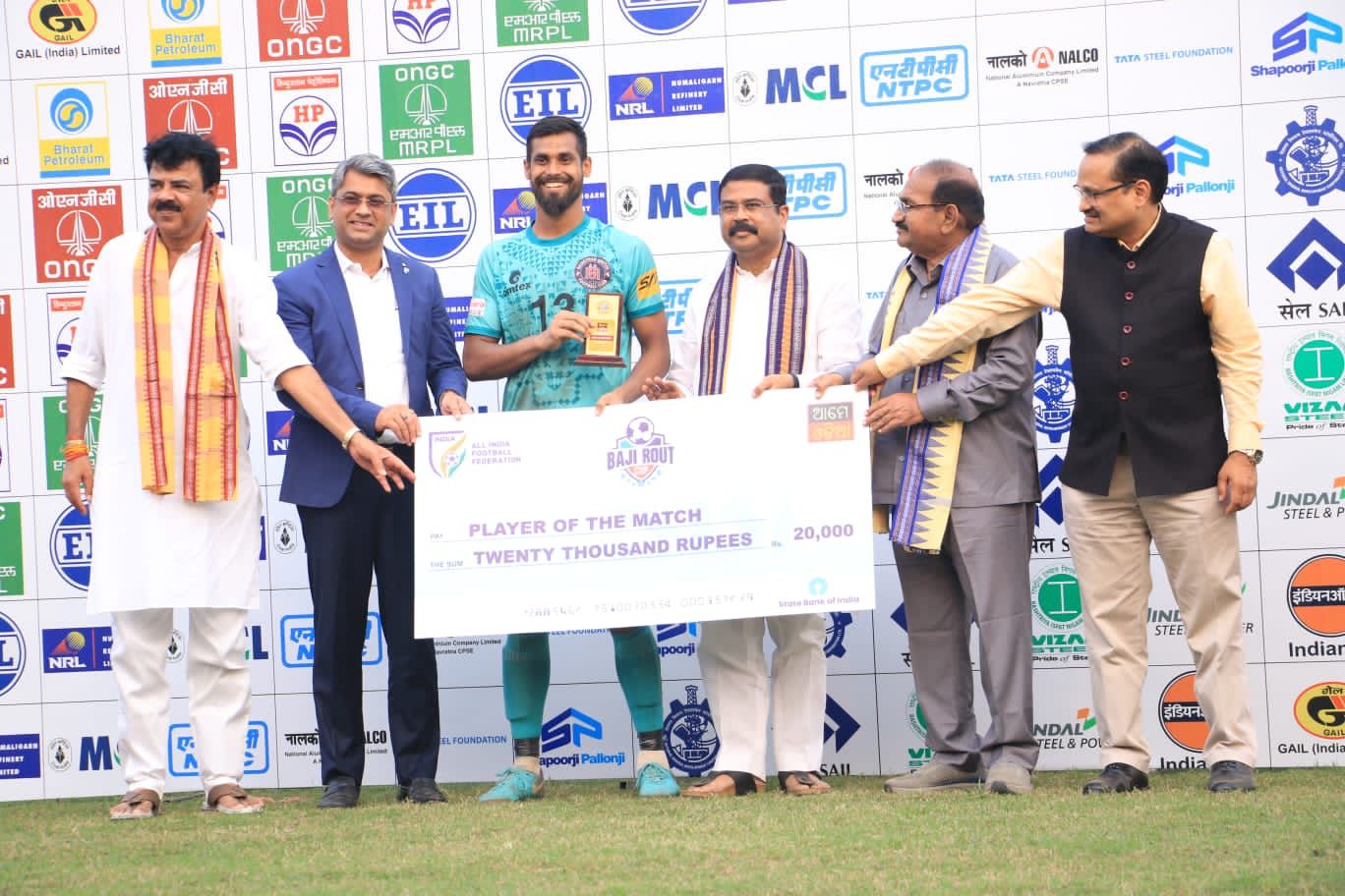 ସୂଚନାଯୋଗ୍ୟ, ‘ବାଜି ରାଉତ ଫୁଟବଲ କପ’ର ଫାଇନାଲ ମ୍ୟାଚ ତାଳଚେରର ବ୍ଲାକ୍ ଡାଇମଣ୍ଡ ଷ୍ଟାଡିୟମରେ ଗୋଆର ଚର୍ଚ୍ଚିଲ ବ୍ରଦର୍ସ ଏବଂ ରାଜସ୍ଥାନର ୟୁନାଇଟେଡ୍ ଏଫସି ମଧ୍ୟରେ ଅନୁଷ୍ଠିତ ହୋଇଥିଲା । ଏହି ସଂଘର୍ଷପୂର୍ଣ୍ଣ ଫାଇନାଲ ମ୍ୟାଚରେ ରାଜସ୍ଥାନ ୟୁନାଇଟେଡ ଏଫସି ଚାମ୍ପିୟନ ହୋଇଥିଲା । ବିଜୟୀ ଟିମକୁ ଶ୍ରୀ ପ୍ରଧାନ ଶୁଭେଚ୍ଛା ଜଣାଇବା ସହ ରନର୍ସ ଅପ ହୋଇଥିବା ଗୋଆ ଚର୍ଚ୍ଚିଲ ବ୍ରଦର୍ସ ସମେତ ଟୁର୍ଣ୍ଣାମେଣ୍ଟରେ ଅଂଶଗ୍ରହଣ କରିଥିବା ଓଡ଼ିଶା ସମେତ ସବୁ ଟିମର ପ୍ରଦର୍ଶନ ପ୍ରଶଂସନୀୟ ବୋଲି କହିଛନ୍ତି । ଏହି ଟୁର୍ଣ୍ଣାମେଣ୍ଟ୍ ଢେଙ୍କାନାଳ, ଅନୁଗୋଳ ଓ ତାଳଚେରର ଯୁବବର୍ଗଙ୍କ ମଧ୍ୟରେ ଫୁଟବଲ ଓ ଅନ୍ୟାନ୍ୟ ଖେଳ ଖେଳିବା ପାଇଁ ନୂଆ ଉନ୍ମାଦନା ତିଆରି କରିବ ବୋଲି କେନ୍ଦ୍ରମନ୍ତ୍ରୀ କହିଛନ୍ତି ।